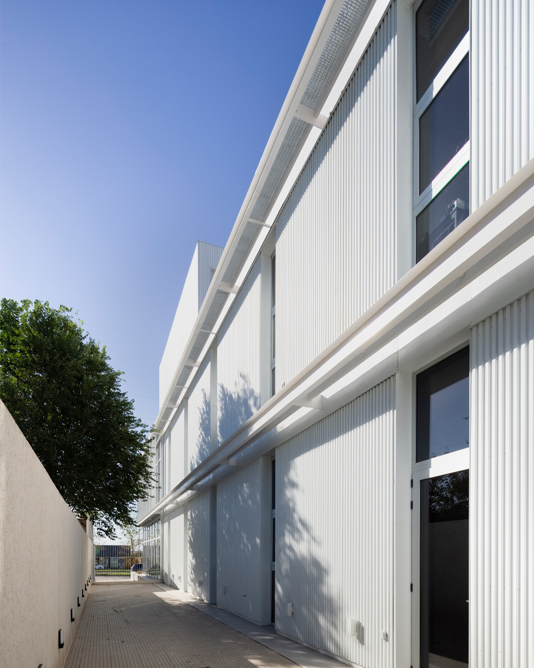 El edificio se articula mediante cuatro fachadas y un patio central que interrelaciona sus volúmenes. La claridad y la transparencia son notorias gracias a su estructura metálica con construcción en seco y cierres vidriados, lo que permite la permeabilidad entre el interior y el exterior. Los cortasoles lineales Fins resuelven las cuestiones climáticas y dotan de privacidad a ciertas estancias.
