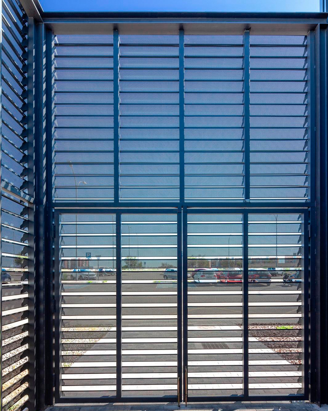 Estética Aérea: El juego de líneas y sombras que crean las Celosías le da al edificio una «piel» dinámica que evoca movimiento, perfectamente alineada con la actividad aeronáutica.