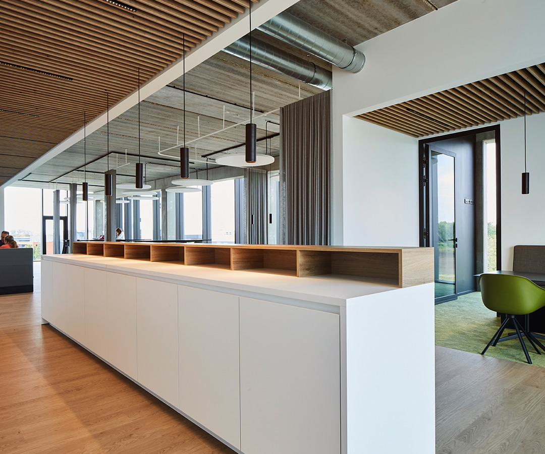 WoodLines es el resultado de la innovación de Hunter Douglas para cielos lineales. Utilizando tecnología de vanguardia, adherimos chapas de madera natural a perfiles metálicos, creando un listoneado continuo de gran calidez y estética.
